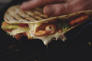 TOP 1 tortilla with 1 cheese slice, shrimp, salsa and avocados; cover with remaining cheese slice and tortilla.