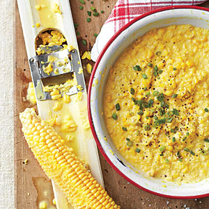 Cut kernels from cobs to yield 6 cups; discard cobs. Cook kernels in a small Dutch oven over low heat, stirring often, about 30 minutes or until corn is tender. (To prevent corn from drying out, add up to 10 Tbsp. water, 1 Tbsp. at a time as needed, during last 15 minutes of cook time.) Stir in cream and butter, and cook, stirring occasionally, about 5 minutes or until mixture reaches desired consistency. Stir in salt and pepper. Sprinkle with chives, if desired.