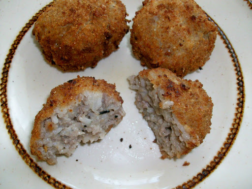 23) When oil is heated, carefully drop a few rice balls at a time into fryer, turning frequently so evenly browned.
