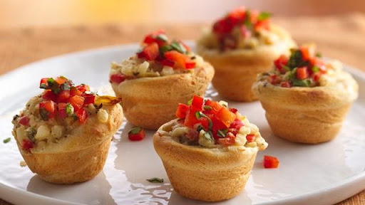 2) Heat oven to 375°F. Spray 16 mini muffin cups with Crisco® Original No-Stick Cooking Spray. Remove crescent rounds from can; do not unroll. Using serrated knife, cut roll evenly into 16 rounds; carefully separate rounds. Press each round in bottom and up side of cup. Spoon 2 tablespoons of the corn mixture into each cup (cups will be very full).