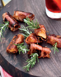 Prosciutto is wrapped around persimmon wedges and roasted until the meat crisps and the fruit turns tender and sweet.
