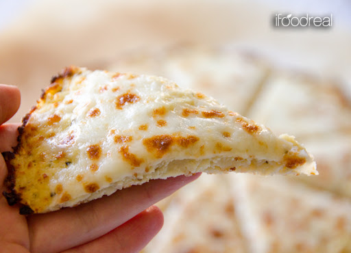 Transfer cauliflower mixture onto the same baking sheet you used to roast the florets (I used the same parchment paper but you can swap it for a new one if it gets too soggy), and flatten with your hands until thin pizza crust forms.