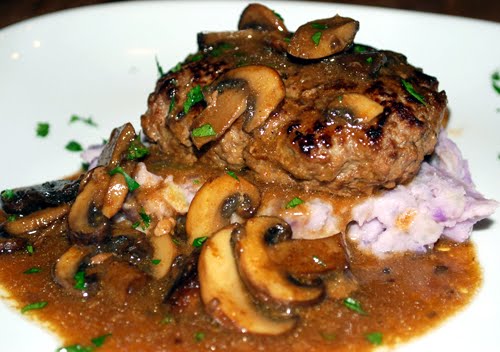 - # To serve, pour gravy over Salisbury steak. Serve potatoes with the steaks.