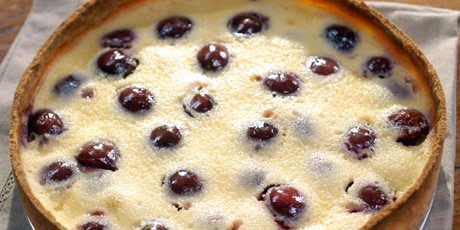 2. Pour the custard over the cherries. Bake in a 375F oven until set, about 25 minutes. Cool before serving.