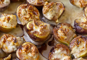 Fill each fig with Gorgonzola and top with a quarter of a walnut. Bake for 5 minutes or until the cheese is melted and bubbly.