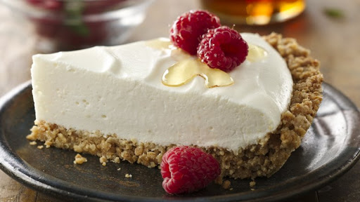 5. Fold in whipped topping. Pour into crust. Refrigerate until set, about 2 1/2 hours. Garnish with raspberries and honey.