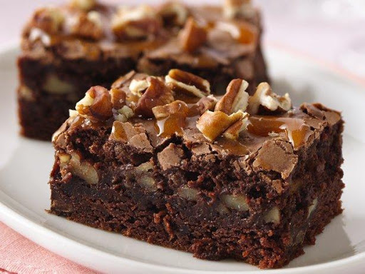 Drizzle caramel topping over bars; sprinkle with pecans. Refrigerate 2 hours or until set. For bars, cut into 9 rows by 4 rows. Store covered in refrigerator.
