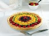 4. Place white chips and whipping cream in medium microwave-safe bowl. Microwave at MEDIUM (50%) 1 to 1-1/2 minutes or until chips are melted and mixture is smooth when stirred. Beat in cream cheese. Spread on cooled crust. Prepare FRUIT TOPPING. Arrange fruit over chip mixture; carefully pour or brush topping over fruit. Cover; refrigerate assembled tart until just before serving. 10 to 12 servings.