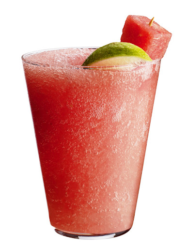 - Puree 1 1/2 cups cubed watermelon, 1 cup tequila, 1/2 cup each lime juice and orange liqueur, 1 to 2 tablespoons confectioners' sugar, 1/2 teaspoon salt and 3 cups ice in a blender. Divide among glasses; garnish with lime and watermelon.