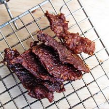 Cook in food dehydrator or oven on lowest setting. Test jerky for dryness by cooling a piece. When cool it should crack when bent but not break and there should be no moist spots.