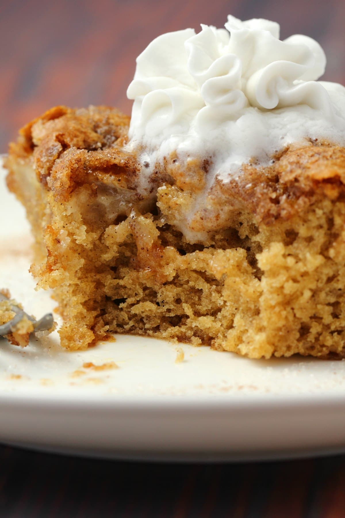 Light and fluffy vegan apple cake with a cinnamon sugar topping. Packed with fresh apple flavor and absolutely divine served warm with vegan whipped cream.