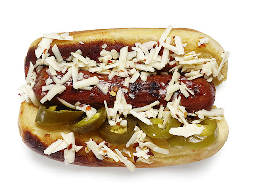 - Serve grilled dogs on grilled buns with shredded jalapeno jack cheese and sliced pickled jalapenos.