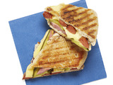 - Split griddled hot dogs in half lengthwise. Layer on sub rolls with sliced ham, dill pickles, yellow mustard and Swiss cheese. Cook in a Panini press or buttered skillet, flattening, until golden.