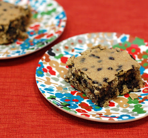 Spoon the batter into the prepared pan and smooth down with a wet baking spatula or the back of a wet spoon. Top with the remaining 1/4 cup of chocolate chips.