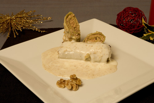 CANELONES CON SALSA BECHAMEL Y NUEZ