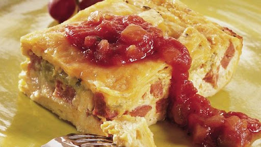 3) In medium bowl, combine eggs, milk, oregano and ground red pepper; beat well. Pour over mixture in baking dish. Sprinkle with remaining 1/2 cup cheese; press lightly into egg mixture. Cover with foil. Refrigerate at least 8 hours or overnight.