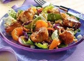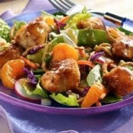 Dive into a salad with crispy chicken, crunchy veggies, sweet oranges and a tangy Asian dressing.