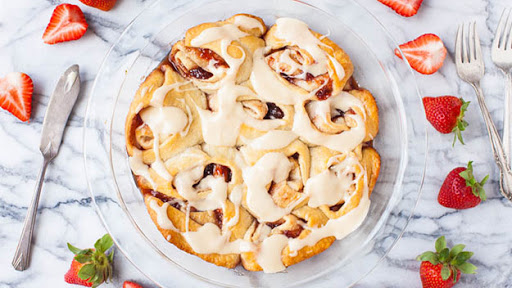 Generously drizzle glaze over rolls (it’s not necessary to wait for them to cool). Garnish with fresh berries. Serve warm. Store in airtight container up to 2 days.