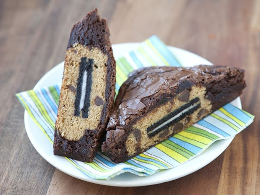 Shape about 1 tablespoon cookie dough around each cookie; arrange in 3 rows by 3 rows in pan. Cover dough-wrapped cookies with remaining brownie batter.