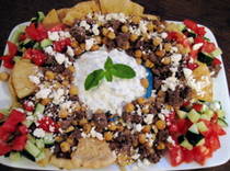 In a small bowl, combine the yogurt, lemon juice, lemon peel, cucumbers and remaining salt and pepper. Arrange pita wedges on a serving platter. Layer with lettuce, lamb mixture, tomatoes, olives, onions and cheese. Serve immediately with cucumber sauce. Yield: 12 servings.