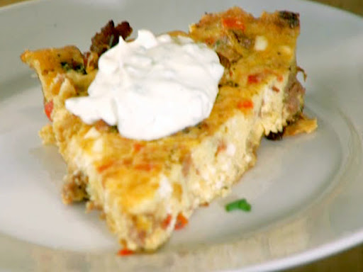Cut the frittata into pieces and serve with dollop of the sour cream sauce.