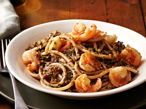 Meals (Bucatini with Pesto & Shrimp)
