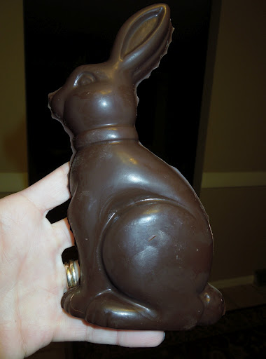 Chocolate Easter Bunny made with no dairy, no soy, no egg, no nuts, no gluten and can be made with no corn.