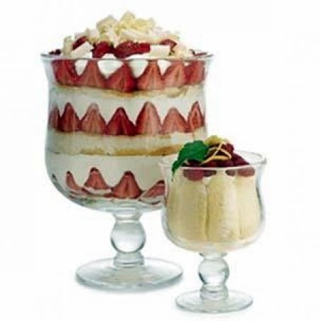 A traditional English dessert, trifle features sponge cake or ladyfingers layered with fresh fruit, spirits and whipped cream. Here we enrich the whipped cream with mascarpone, a buttery cow’s milk cheese from Italy.