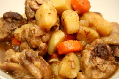 6. Reduce gravy and cook until the potato thickens the gravy. Put in dark soy sauce, sugar and season with salt and pepper to taste.