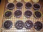 Pour into 12 muffin pans lined with the papers and sprayed with non-stick spray (optional). Sprinkle 1 tsp. chips on each muffin and gently stir into batter. Bake at 350 for 18 minutes. Turn off oven and allow to cool for about 10 minutes in the oven. Remove from pan and cool completely on a wire rack. Refrigerate.