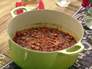 Next add the root beer, cider vinegar, molasses, grainy mustard, red pepper flakes and garam masala. Stir to combine. Then add the beans and bacon, and gently stir so the beans don't lose their shape. Taste for salt and pepper, then pop into the oven, uncovered, until the mixture thickens, about 30 minutes. Remove the beans from the oven, let it cool slightly, and sprinkle with reserved bacon and serve.