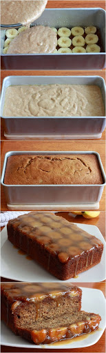 2.Spread the brown sugar on the bottom of the loaf pan. If using nuts, sprinkle them evenly over the sugar. Dot with the butter. Put it in the oven for about 8 minutes. Stir the mixture until dissolved and spread evenly on the bottom of the pan. Place a single layer of the banana slices on top of the sugar mixture along the entire bottom of the pan.