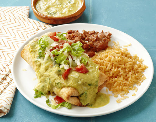 Put the chimichangas seam-side down on the baking sheet; brush with the butter-oil mixture. Bake 8 to 10 minutes per side, brushing again after you flip. Top with the sauce, more cheese, lettuce and tomato. Serve with rice and the remaining beans.