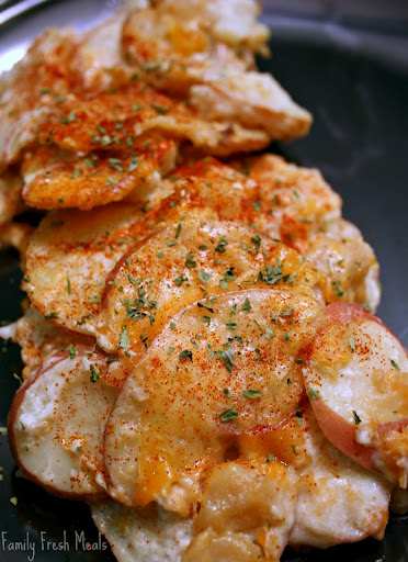 - 7 . Cook on HIGH for 3.5 to 4.5 hours (or on LOW 7 to 8 hours). Serve topped with a sprinkle of paprika and chives. I did not have chives, so I used some parsley I had on hand... still very tasty!