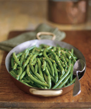 To fake it...and save 15 minutes: Thaw three 9-ounce packages frozen whole green beans under warm running water. Place in a skillet with 1/2 cup bottled honey-mustard salad dressing. Over medium heat, toss until heated through, adding more dressing if necessary to lightly coat all the green beans. Total time: 5 minutes.