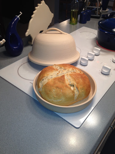 5. Preheat oven to 450 degrees F. Slash top of dough with a razor blade or a sharp knife and place cloche, with lid in place, in oven for 15 minutes. Reduce heat to 400 degrees and continue baking for another 30-40 minutes or until bread is crusty, golden brown and tests done (loaf should sound hollow when tapped). The La Cloche lid should be removed for the last 5 to 10 minutes of baking. Cool on a wire each and serve while still warm.
