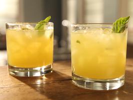 In a pint glass, muddle the lemon slices with the basil. Add the vodka and stir. Strain into 2 rocks glasses filled with ice, and top with orange soda. Garnish with fresh basil leaves and serve.