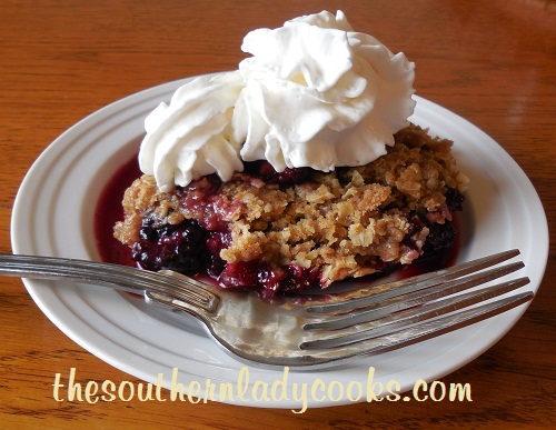 • 3 cups fresh blackberries (could use frozen) or enough to cover the bottom of an 8 x 8 inch baking dish
