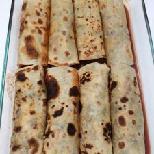 4. In a large bowl, add the cooked quinoa and black beans. Add the sautéed vegetable mixture and stir to combine. Pour in the enchilada sauce and stir. Add 1/2 cup shredded cheese.