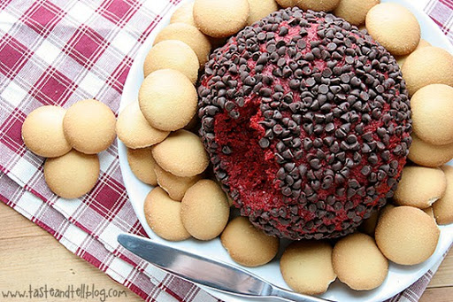 A sweet cheese ball perfect for parties or get togethers. Just combine red velvet cake mix with cream cheese and butter, and cover in chocolate chips!