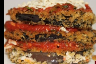 Add more oil to the pan if necessary, and fry three more eggplant rounds, repeating previous process until all eggplant rounds have been fried.
