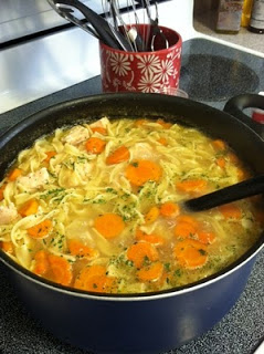 Add bag of egg noodles and cook until noodles are tender (approx. 12-15 minutes), and stir occasionally. Sprinkle parsley flakes on top and serve!!! Don't skip out on the parsley flakes- it really adds to the "homestyle" look of the soup.