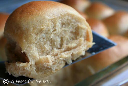 I recently posted how to make one-hour rolls, using unbleached white flour. I decided to tinker with the recipe, by adding whole wheat flour. Of course, a Kitchen Aid Stand Mixer, with a dough hook is what makes this possible. But, you can use elbow grease, but allow for a little extra time and some sweat equity. These were ready in an hour, turned out fluffy and tender, and now I can have homemade dinner rolls in no time at all. You can view an all-white bread version at http://foodiewife-kitchen.blogspot.com/2012/04/60-minute-dinner-rolls.html