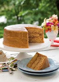 Spread Linda’s Cooked Caramel Icing between layers, on top, and around sides of cake, working quickly†. Store at room temperature in an airtight container for up to 1 week.