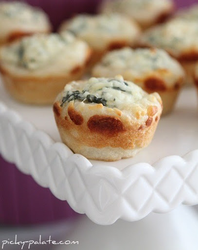1. Preheat oven to 350 degrees F. Spray 10 muffin cups with non stick cooking spray. Unroll package of french bread loaf and slice into 10 equal size slices, about 1 inch thick. Press each slice into about a 3 inch round, I did this by pressing in between my hands. Press into the bottom and up sides of the muffin cup. Set aside.