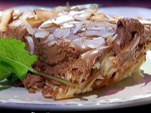 Spread coconut on a baking sheet, then toast in oven until golden. Remove from oven and place in a bowl, reserving about a handful of toasted coconut separately. Generously butter a 9-inch pie pan. Toss toasted coconut with melted butter until coconut is well coated. Press coconut butter mixture into buttered pie pan to form a crust. Chill until firm, about 1 hour. In a double boiler or a microwave, melt the chocolate. Let cool.