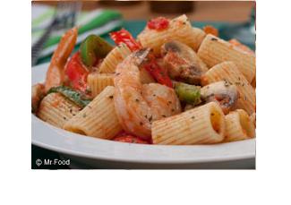 Meanwhile, heat oil in a large skillet over medium-high heat. Add shrimp, peppers, mushrooms, garlic, and basil. Cook 3 to 4 minutes, stirring frequently, until shrimp are warmed through and peppers are almost tender.