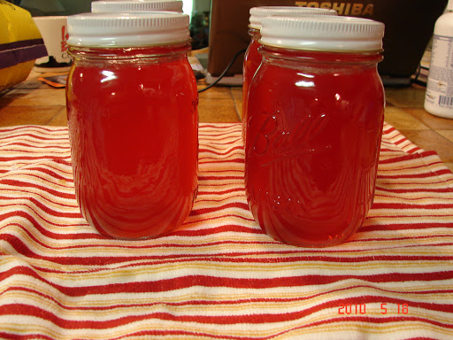 To a large pot, add 2 gallons mayhaw fruit and enough water to cover the fruit by no more than 1 inch. Boil mayhaw till tender. Strain off pulp and seeds in colander, catching the juice in another container. Now pour juice through small mesh strainer till fairly clear. Some folks add a drop or two of red food coloring just to give it a brighter color and make it look pretty.