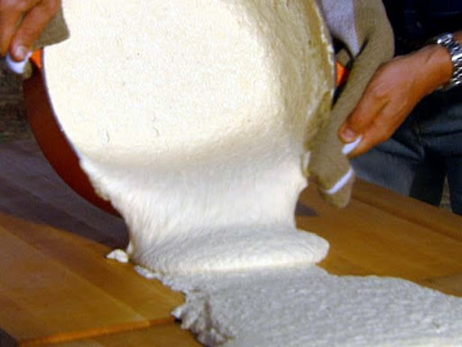 To encourage polenta to come cleanly out of the pan, cook over medium heat. Run a spatula or wooden spoon around the sides of the pan to clean off the polenta. Do not stir, but wait and watch for a few seconds until a large bubble begins to form and pushes the polenta upward. Pour immediately into a warm dish.