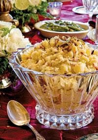 Stir cream cheese, sour cream, chives, bacon, salt & pepper into potatoes. Divide mixture evenly between six 6 oz. ramekins or custard cups (or a 2-qt. baking dish). Bake at 350 for 20 ninutes or until thoroughly heated.